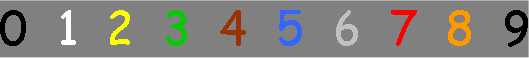 Noch verwunderlicher für mich ist, dass ich glaube, dass die Farben, die ich sehe, eine Tatsache sind, dass 3 absolut klar grün ist. Ich habe in meinem Leben sogar 2 weitere Leute getroffen, die die Farben genauso sehen: 0 = schwarz, |