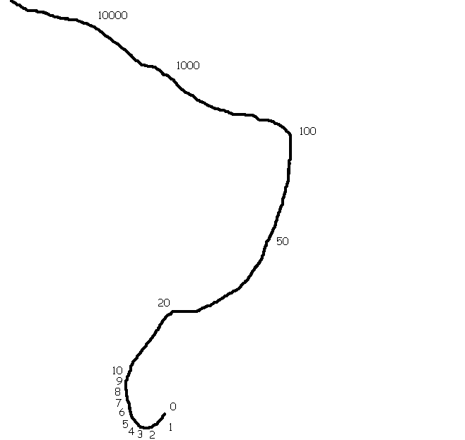 | Das sieht man: | Man sieht die Draufsicht auf die Zahlenreihe, die ich vor meinem inneren Auge sehe. |