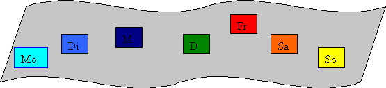 | Das sieht man: | die schlimmsten tage sind montag und sonntag. die sind niedrig. die besten sind am höchsten und in rot. mittwoch ist deswegen gut, weil die woche fast rum ist, aber dann kommt ja noch der donnerstag dazwischen, mit dem man nicht rechnet, also ist er niedriger. |