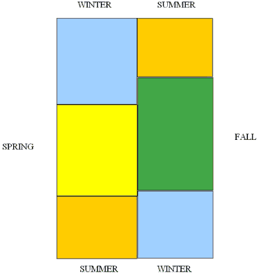 | Das sieht man: | So sehe ich die Jahreszeiten als Ganzes. Wenn ich an einen bestimmten Monat in der betreffenden Jahreszeit denke, sieht er so aus wie bei meinem Jahr. |